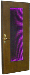 «Световой тонель» - это зеркальный стеклопакет, с цветными диодами внутри. При его включении создается потрясающе неповторимый трехмерный эффект, уходящих вдаль, огоньков и кажется, что за дверью, открывается новый мир. В выключенном состоянии, это просто зеркало, что весьма удобно в прихожей.