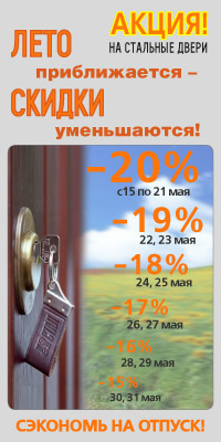 При заказе дверей СТАЛ-50, СТАЛ-65, СТАЛ-70, СТАЛ-80 и СТАЛ-100 предоставляется скидка в размере:
