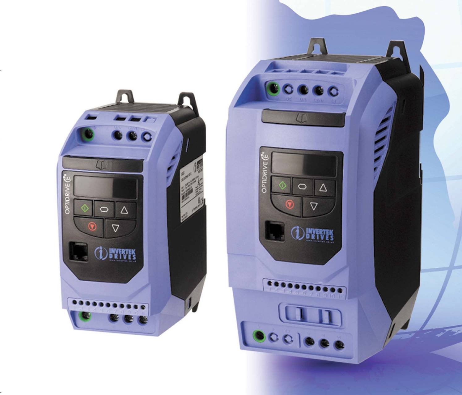 ODE-2-12037-1KB12-01, ODE-2-12075-1KB12-01, ODE-2-22110-1KB42-01 OPTIDRIVE, преобразователи частоты 220 В с однофазным входом и выходом.