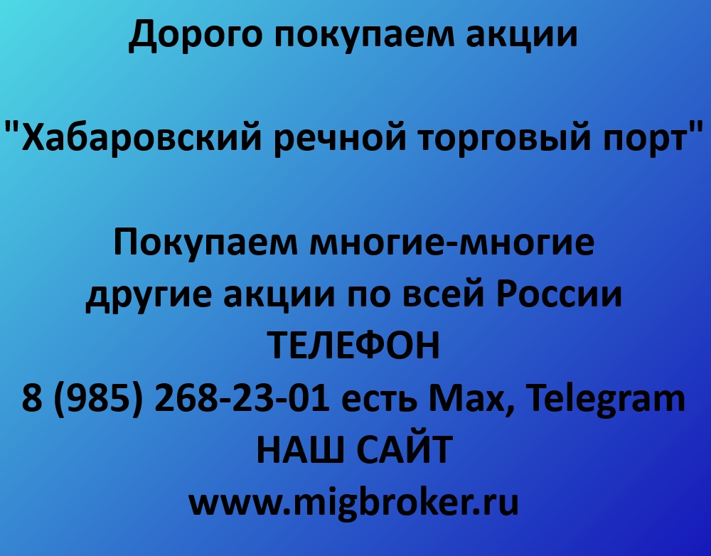 Открыть объявление »Хотите продать акции «Хабаровский речной торговый порт»? Узнайте реальную цену и стоимость на сегодня. Оплата сразу до подписания договора. Работаем п...