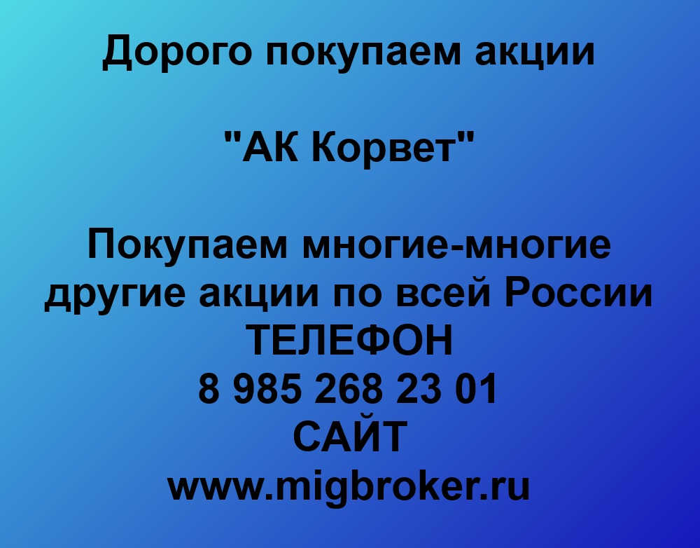 Открыть объявление »Хотите продать акции «АК Корвет»? Узнайте реальную цену и стоимость на сегодня. Оплата сразу до подписания договора. Работаем по всей России, все коми...
