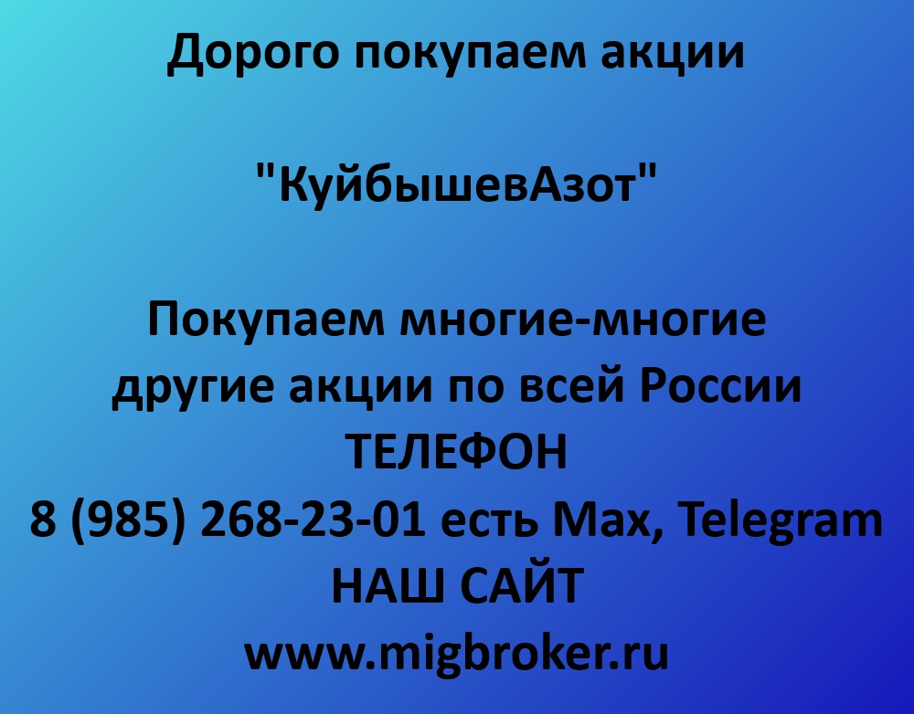 Открыть объявление »Хотите продать акции «КуйбышевАзот»? Узнайте реальную цену и стоимость на сегодня. Оплата сразу до подписания договора. Работаем по всей России, все к...