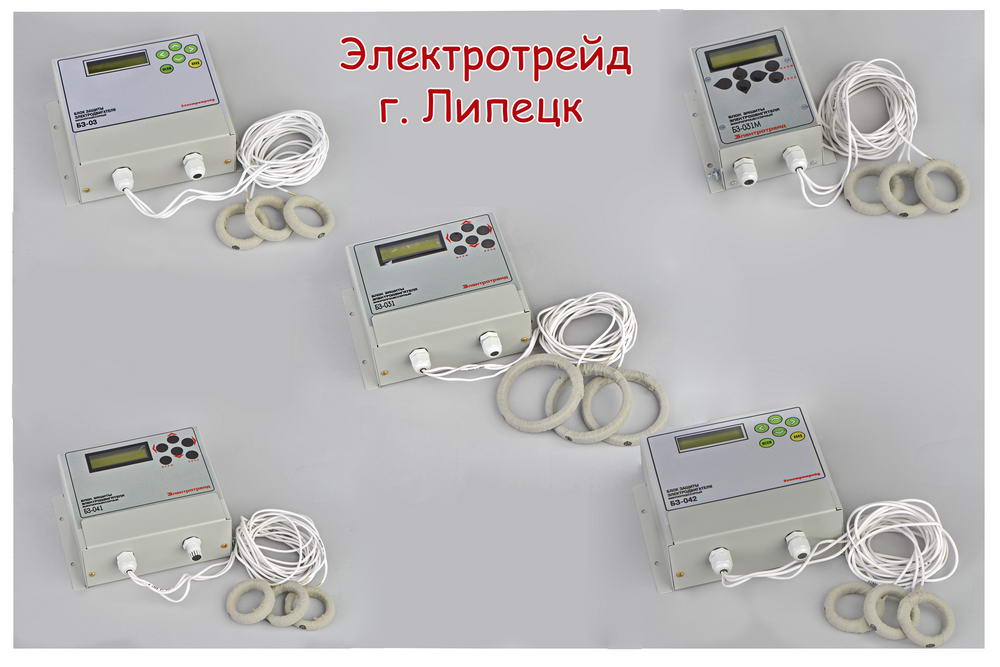 Защита трехфазных асинхронных электродвигателей БЗ-031. Диапазон контролируемых токов: 0-200А и 100-900А. Габариты 200х145х71 (мм). Датчики тока в комплекте. Масса в сборе (блок+датчики тока) 1,3 кг. Внутренний диаметр датчиков до 200А – 37мм, внутренний диаметр датчиков до 900А – 75мм. Потребляемая мощность - не более 5 Вт. Полная гальваническая развязка. Защита от всех неполно-фазных режимов: отключение двигателя от питающей сети при любых недопустимых перегрузках, при потере нагрузки по току (падение «зеркала» для погружных насосов, «холостой» ход для любых дрругих насосов), при нарушении симметрии фазных токов, при обрыве любой из фаз; при коротком замыкании (функция МТЗ-максимальная токовая защита), счетчик моточасов. Особенность - электромеханическое реле с нагрузкой до 16А (220В переменного тока) блок сохраняет работоспособность (удерживает реле при падении напряжения до 50% от номинала) (протокол испытаний на помехоустойчивость, помехозащищенность), фильтр питания держит броски напряжения до 470В. Степень защиты IP-54: корпус металл-механическая прочность, защита от внешних электромагнитных, электрических, климатических воздействий, спец. точка заземления. 2-х строчный ЖКИ-монитор (отображение рабочего режима БЗ на русском языке), простота программирования, обслуживания. Продукция сертифицирована. Инструкция по эксплуатации на сайте предприятия www.el-treid.com